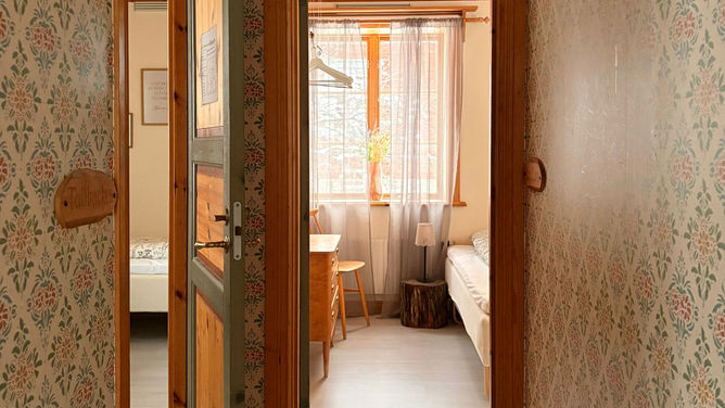 • Das Sme-Lars Komfortzimmer umfasst ein Zimmer mit Doppelbett und ein Zimmer mit zwei Einzelbetten, ergänzt durch ein geräumiges Wohnzimmer und ein eigenes, neu renoviertes Badezimmer. Ideal für Familien oder Freunde, die gemeinsam reisen.